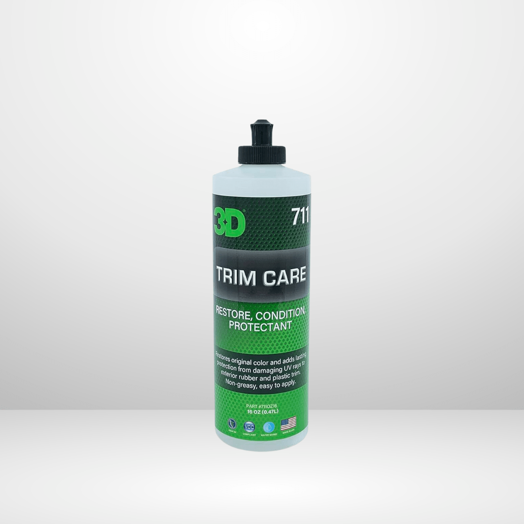 3D Trim Care is a thick polymer protectant designed to restore and rejuvenate the original look of bumpers, trim, and exterior rubber moldings. After it is applied, it will be dry to the touch and will not attract dust. (16OZ 12/cs)